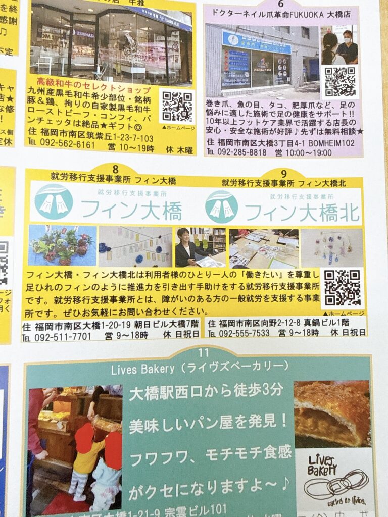 天神駅、薬院駅、平尾駅、高宮駅、大橋駅の素敵なお店や街のイベント情報などを掲載されているフリーペーパーの【E】FUKSNAPさんにフィン大橋・フィン大橋北の情報が掲載されています。