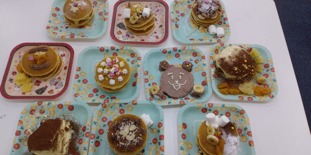 会話を楽しみながら素敵なオリジナルパンケーキが出来ました😊