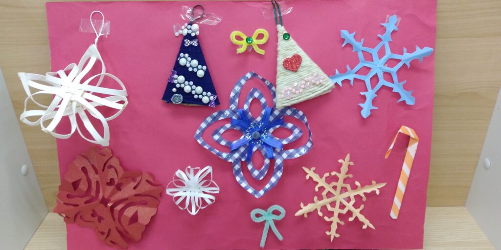会話を楽しみながら素敵なクリスマスの飾りつけを作成し飾りましたよ💛