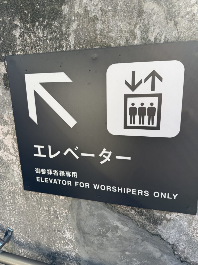 参拝者用のエレベーターもあるということで帰りはエレベーターに乗って下りました。
