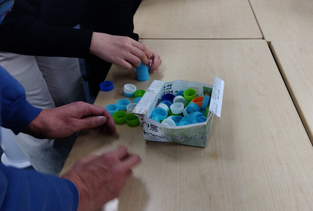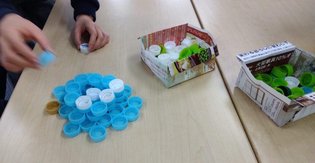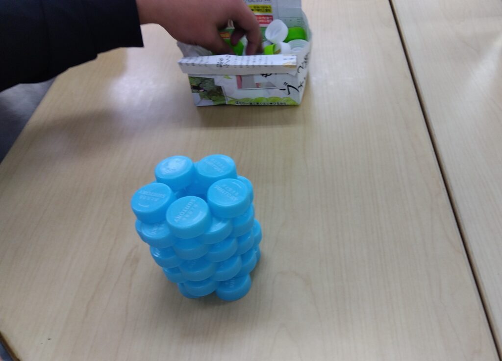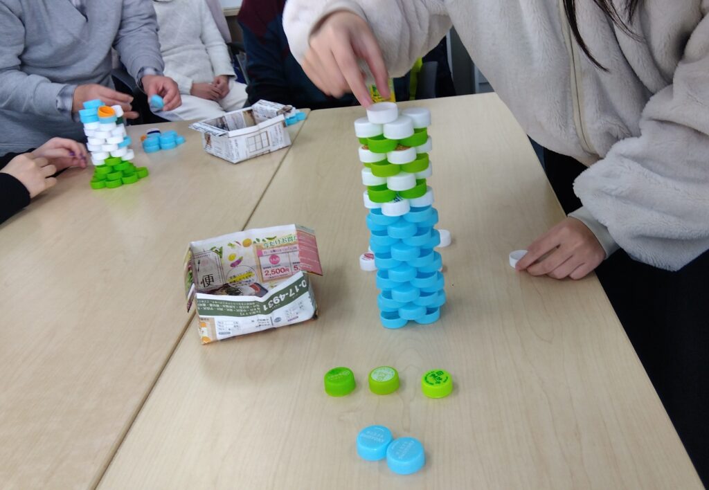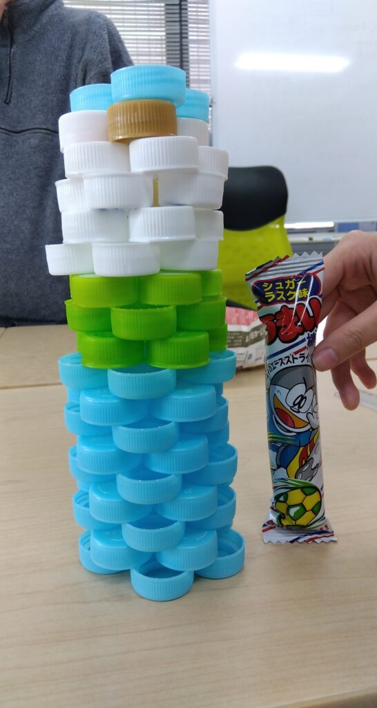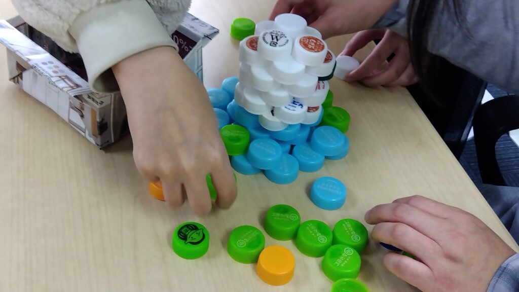 フィン大橋では、ペットボトルのキャップを使ってチームビルディングを行いました。