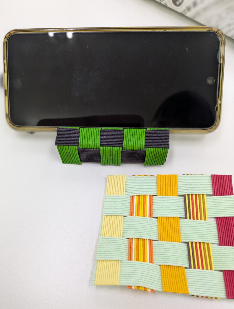 皆さんはじめてでしたが、見本を見ながら長さを測りカット、ボンドの位置を確認しながら丁寧に作成されました。色の組み合わせも自由に選ばれ素敵な作品が出来ました💞