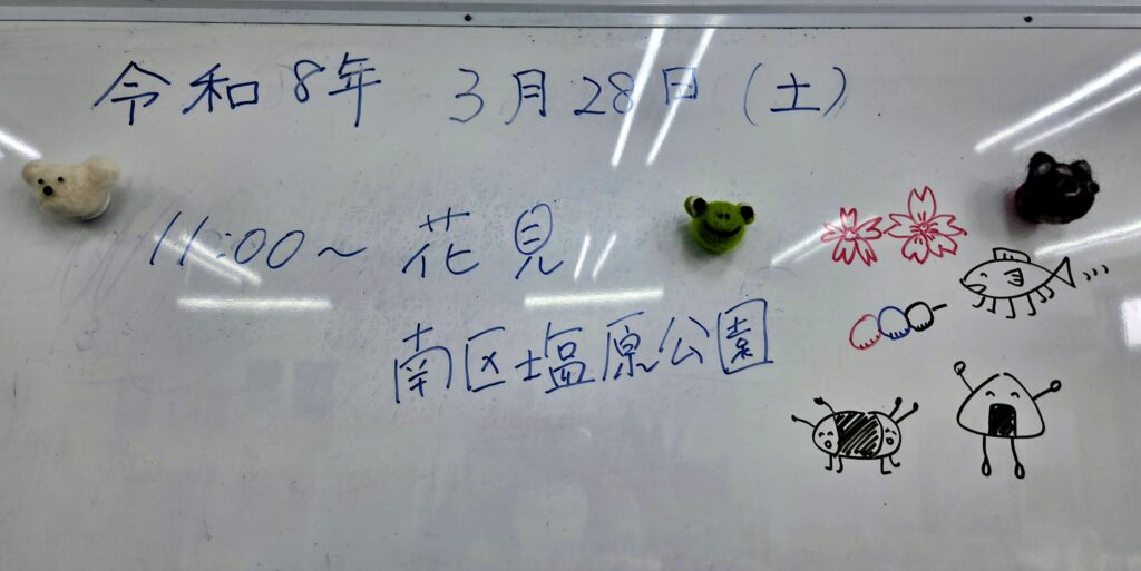 花見なのか、スポーツなのかわからず、でも、皆と、スポーツ出来て楽しかったようです。