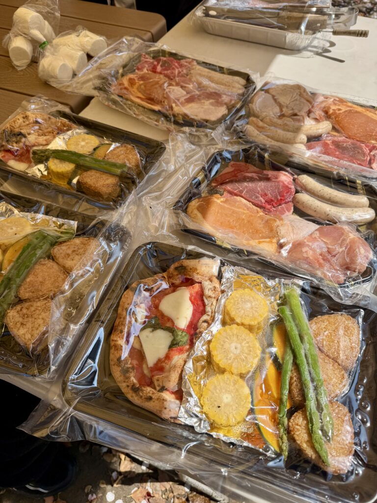 牛、豚、鶏、野菜、フランクフルトソーセージ、ピザ、焼きおにぎり、マシュマロなどそれぞれとてもおいしく皆さんよろこばれてました☺️