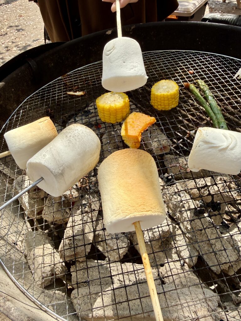 マシュマロを焼くと甘みが倍増し、中はふわとろに変化しおいしくなるんですけど、初めての体験の方も多く、甘さに感動される方も多かったです