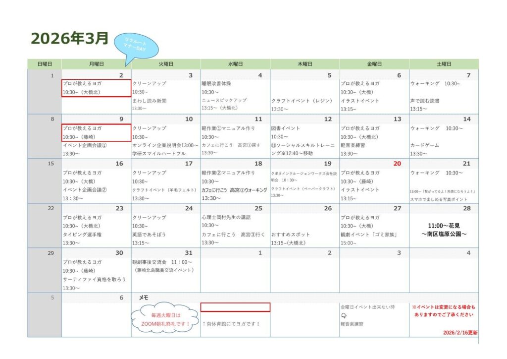 【フィン大橋】2月イベントカレンダー修正版